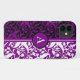Elegant, colorful and beautiful custom purple, white and black monogram damask pattern iPhone 4/4S Case-Mate cases and gifts for Valentine's Day, birthdays, Christmas or any occasion. Just add your initials!