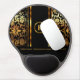 Monogram Dark Gold & Black Floral Damask Gel Mouse Pad