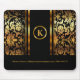 Monogram Dark Gold & Black Floral Damask Mouse Pad