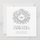 Dark gray hand-drawn leaf monogram wedding canceled announcement card. This simple yet stylish card is part of the matching dark grey hand-drawn leaf monogram wedding set. Ideal to use as a wedding information card to inform your guests of a wedding or event cancellation, or reschedule due to illness or unforeseen circumstances. Simple leaf design circling your own monogram initials design. In classic monotone dark gray and white. Other color options are available. Original design by Sarah Trett for www.mylittleedenweddings.com