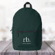 Monogram Dark Green Stylish Modern Minimalist Printed Backpack