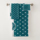 Monogram Dark Teal and White Polka Dot Pattern Bath Towel Set