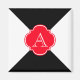Black, red and white geometric pattern with monogram decoration