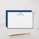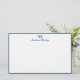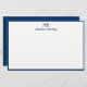 A modern and elegant stationery designed with clean thin navy blue borders, a decorative typography monogram and a classic serif font.