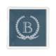 Monogram design with laurel wreath decoration on blue background
