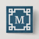 Monogram design with Greek key border decoration on grunge blue background