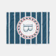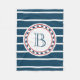 Nautical themed design with monogram decoration in round shape on blue and white striped background