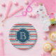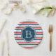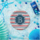Nautical themed design with monogram decoration on blue, white, red and grey striped background