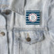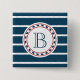 Nautical themed design with monogram decoration in round shape on blue and white striped background