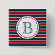 Nautical themed design with monogram decoration in round shape with stars on blue, red and white striped background