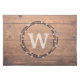 Monogram design for Christmas with wreath and snow decoration on rustic wooden background