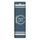 Monogram design with laurel wreath and white stripes decoration on blue background