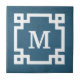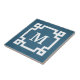 Monogram design with Greek key border decoration on grunge blue background