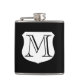 Monogram drink flask | personalizable gift for men with elegant script text. Customizable black background color. Cool gift idea for masculine men. Personalize it with a name or monogram initials. Alcohol / Drinking present.