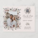 Featuring a chic floral bouquet of pink flowers, pine needle and gray foliage surrounding your monogram or initials with your name, wedding date and place in a elegant combination of cursive and capital letter, this stunning but cheap photo wedding save the date is perfect for any formal celebration, or elegant wedding with gothic romantic vibes. Personalize with your monogram, initials or duogram at the top using the template Card reverse to a matching gray with space for additional text, like formal invitation to follow, rsvp, wedding webside or other important information.