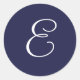Monogram E, White on Navy Blue, Classic Round Sticker