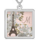 Add your own initial to this pretty Springtime in Paris Eiffel Tower necklace with a pretty cherry blossom and pink polk-a-dot background. Personalize it with your own monogram. Design © Chrissy H. Studios, LLC. All Rights Reserved.