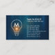 Monogram Electrician Electrical Contractor business card features a bulb icon over a faux blue metallic texture . Perfect for electric, electrical, electrical contractor , electricity, contractor, handyman, house repair, home repair.