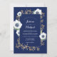 Monogram Elegant Anemone Flower Navy Blue Wedding Invitation