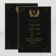 Monogram Elegant Black Gold Leaf Wedding Invitation