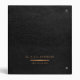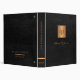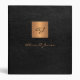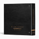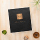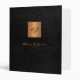 Luxury exclusive looking monogrammed scrapbook wedding album binder featuring a faux gold copper metallic square over a stylish black faux leather background.
