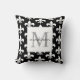 Monogram Elegant Black White Fleur de lis Pattern Throw Pillow