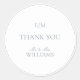 Monogram Elegant Blue Thank You Script Wedding Classic Round Sticker