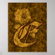 Monogram Elegant Initial E Gold Peony Flower Poster