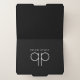 A minimalist monogram design with white typography initials in a classic font with your name below on a black background, for your home office or school items.