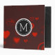 Monogram Elegant Modern Red Heart Pattern #2 3 Ring Binder