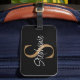 Monogram Elegant Script Name Black Gold Luggage Tag