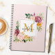 This elegant notebook features a blush pink watercolor floral design with pretty roses, a gold script monogram, and your initial for a personal touch!