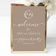 A simple chic foliage faux foil monogram grullo engagement party welcome sign foam board. Easy to personalize with your details. Modern boho engagement party welcome sign foam board editable, wreaths photo wedding invitation, customizable, calligraphy handwritten font, simple, elegant.