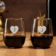 Monogram etched wedding glasses featuring classic hearts. Great party decor. Add your desired monogram to the wedding glass. Use the template to create your own wedding glasses.