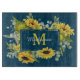 Monogram Eucalyptus Sunflower Frame on Blue Cutting Board