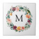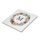 Monogram Fall Autumn Rose Flower Floral Wreath Ceramic Tile