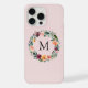 Monogram Fall Autumn Rose Flower Floral Wreath iPhone Case