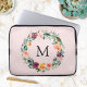 Monogram Fall Autumn Rose Flower Floral Wreath Laptop Sleeve