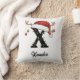 Monogram Family Christmas Antlers Santa Hat Throw Pillow