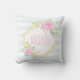 Monogram Fancy Pink Roses Blueberry Throw Pillow. Fancy floral monogram with roses and blueberry. Very ornate and cheerful, with slightly Victorian or shabby chic look and feel. Pastel colors: pink, blue, green. Light blue stripes. Pink and golden monogram (golden is not real gold but color).