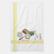 Bring farmhouse warmth and watercolor charm to your kitchen with this personalized towel in our Bread & Herbs Collection. Classic ticking stripes in Butterfly Gold (also available in red, blue, or sage green) frame a cozy still life: a fresh loaf of bread, a slice spread with butter, a floral butter dish, and a tied bundle of herbs. A butterfly hovers at the lavender blooms, adding a delicate finishing touch.