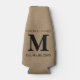 Monogram faux linen burlap rustic initial wedding bottle cooler
