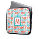 Monogram | Finnish Fox & Bird Folk Art Pattern Laptop Sleeve