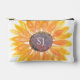 This unique monogrammed accessory pouch is decorated with a yellow watercolor sunflower and stylish typography.