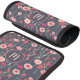 This rose gold luggage wrap is just as pictured online. It is excellent quality and the Velcro stays shut. I also have Rose gold rolling backpack that I also can use it for. The color and design are just as pictured. I’m very happy with my purchase. The design is clear just as pictured online very pretty in the rose gold.