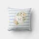 Monogram Floral Chic Pastel Blue Stripe Coastal Throw Pillow
