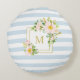 Monogram Floral Chic Pastel Blue Stripes Round Pillow