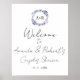 Easy to personalize with your details. A simple chic monogram watercolor floral purple and blue welcome sign for couples shower. Modern boho welcome sign for couples shower editable, customizable, calligraphy handwritten font, simple, elegant.