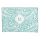 Beautiful floral foliage pattern with leaves, flowers, buds. Elegant monogram. Turquoise and white. Artwork based off William Morris art deco pattern.