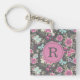 This is a pretty, grey, blue and pink floral and butterfly keychain. Personalize it with your monogram. Perfect for a gift or a stocking stuffer. Designed for you by Blackberry Boulevard.